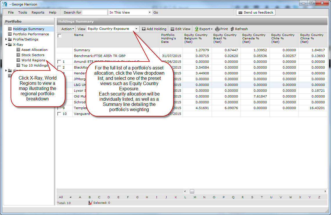 Morningstar Adviser Workstation contains the underlying holdings for thousands of funds, data that can then help with identifying exactly where a client or model portfolio is invested, and hence where changes may need to be made. Adviser Workstation can highlight portfolio weightings on a country or regional basis, by clicking X-Ray > World Regions, or by changing the portfolio view, as illustrated in the link below