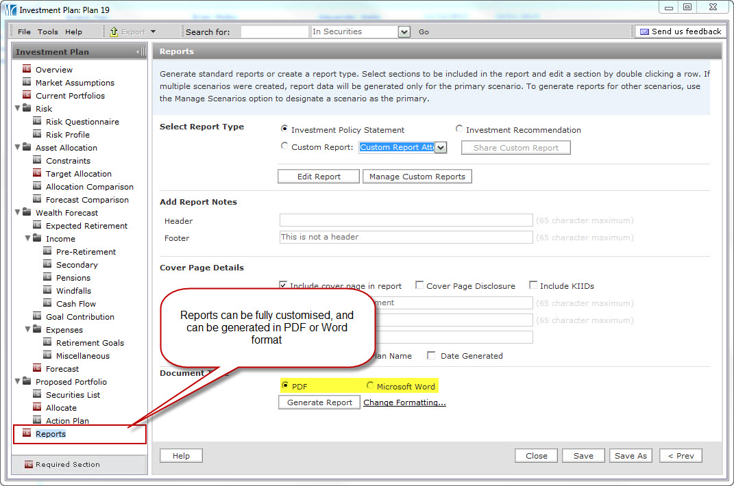 Its straightforward step-by-step process supported by robust methodologies presents a clearer picture of a client’s potential wealth. Before and after scenarios, expressed through customizable reports, make a compelling case for investment recommendations.