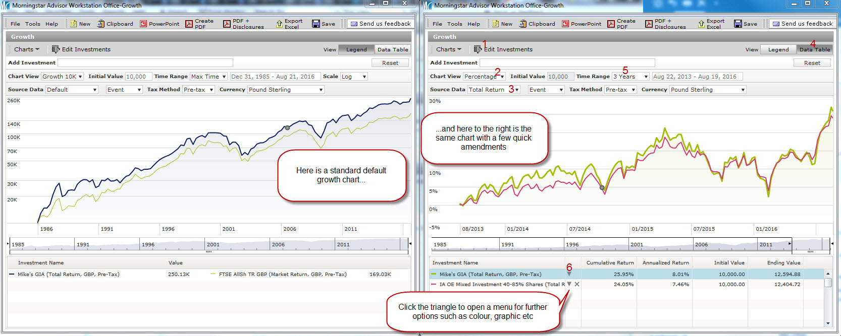 The Morningstar growth chart is a great way to quickly view performance, though there are a variety of ways to customise it to present the data you need, in the most effective way. Click the chart below to see if you are using all the tools at your disposal.