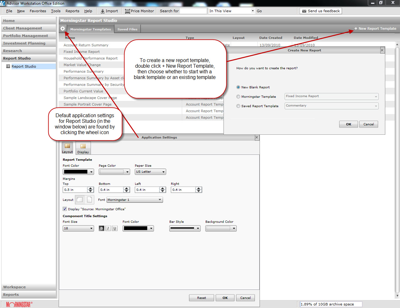Morningstar Adviser Workstation features dozens of professionally designed reports. But your favourite report might just be the one you design yourself. With Report Studio, you can easily create your own custom reports, either as one-off reports for an individual client or report templates for use with your entire practice. In addition to specifying the components of each custom report, Report Studio allows you to incorporate your firm’s logo, custom disclosure information, corporate colour palette, and fonts to create materials that fully align with your firm’s identity and branding.