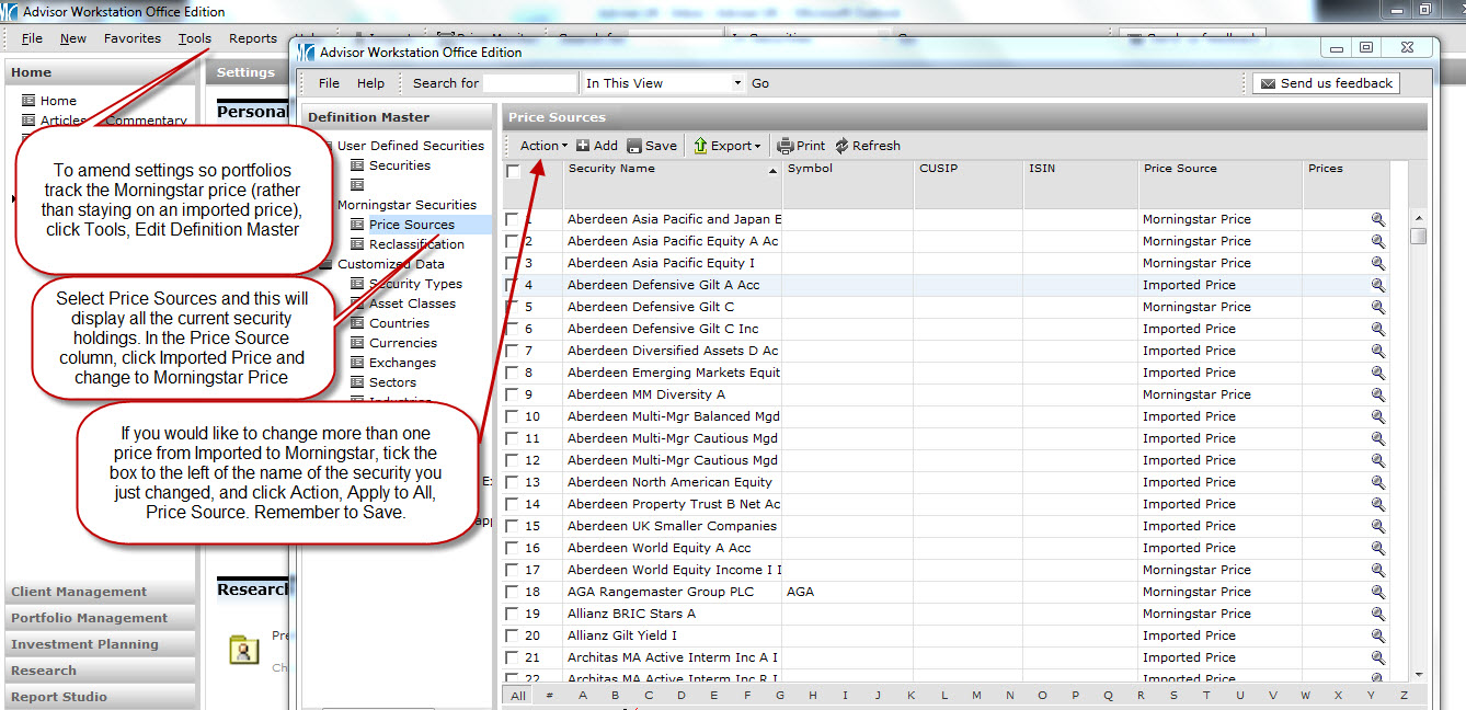Ensure your portfolio is using Morningstar pricing, if not click here to see how to update this