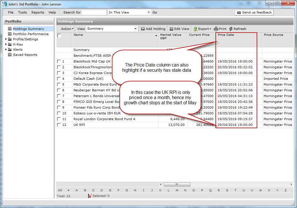 Check the Price Date of the holdings